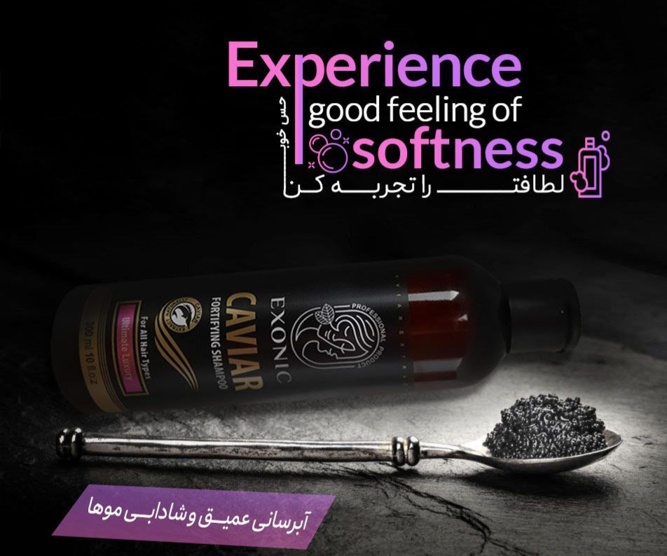 شامپو حاوی عصاره خاویار Exonic حاوی مواد ضدالکتریسیته ساکن بوده و شانه پذیری موها را افزایش داده و به آن ها حالتی ابریشمی می دهد. استفاده از این شامپو باعث ایجاد یک لایه حفاظتی روی موها می شود که آن هارا در مقابل اشعه مخرب UV نیز محافظت نموده و موجب حفظ رنگ طبیعی مو نیز خواهد گردید.